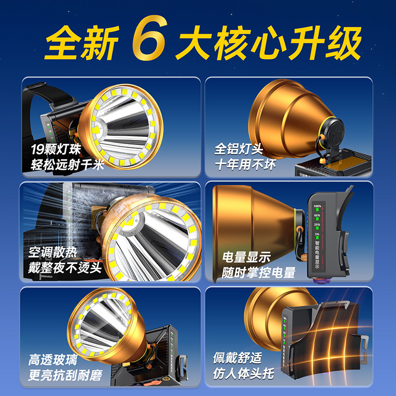 天牛王钓鱼头灯强光充电超亮头戴式手电筒超长续航白光黄光夜钓赶海