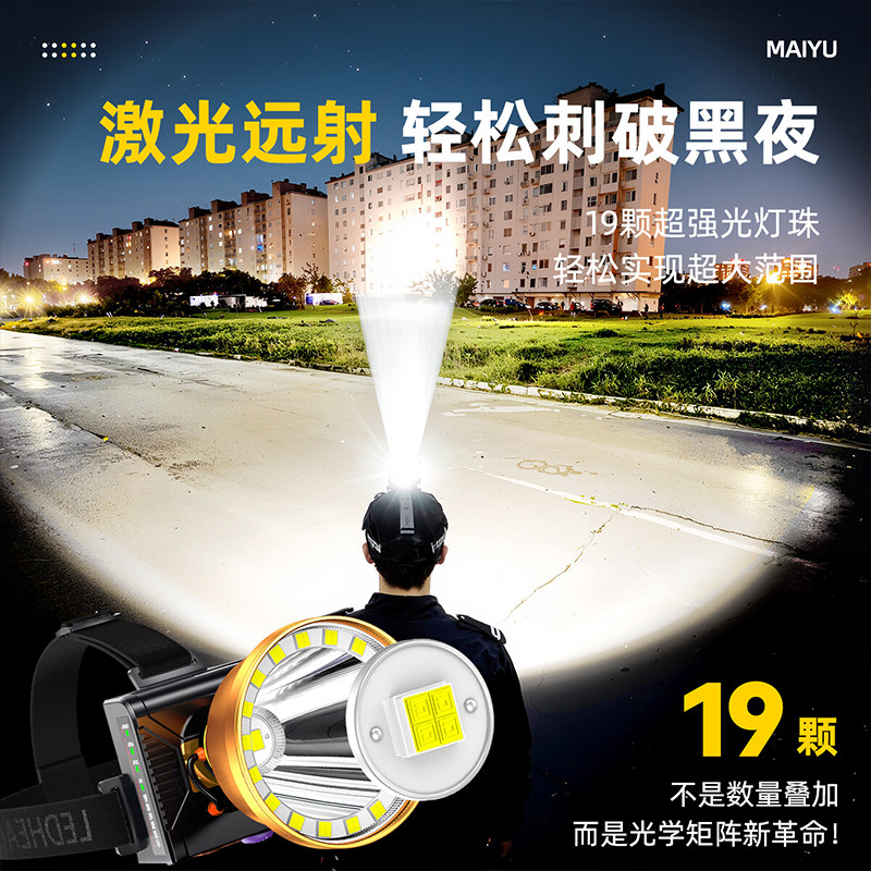 天头灯强光超亮充电感应野外钓鱼赶海专用户外照明黄光头戴式手电筒