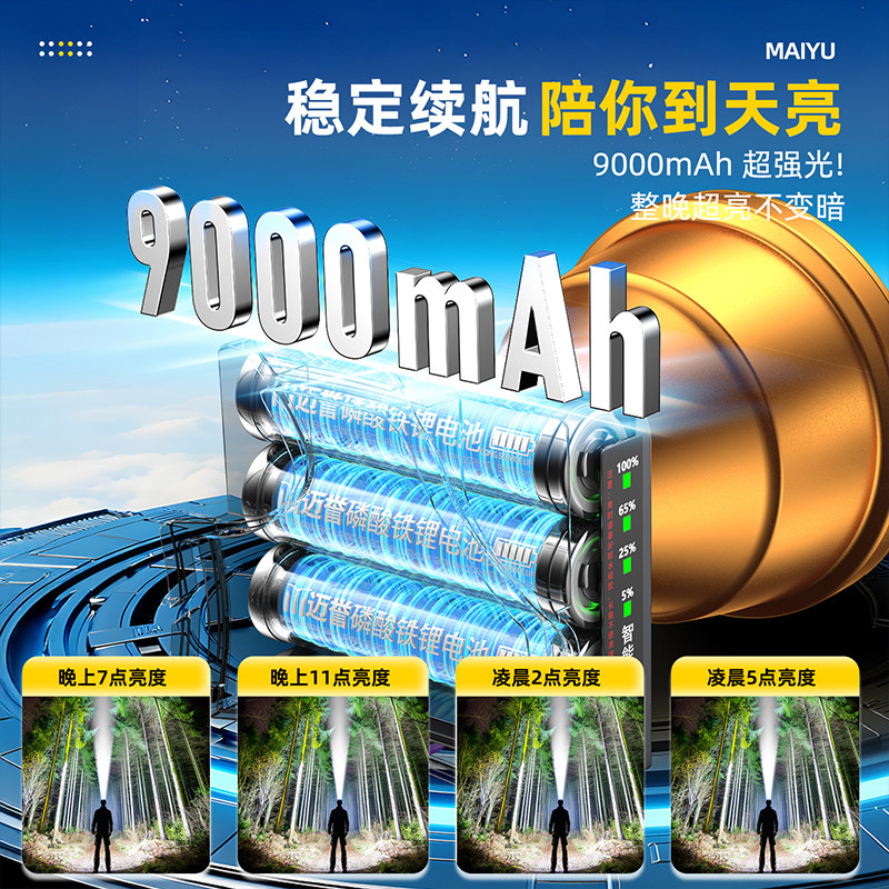 天猫头灯2026新款强光超亮头戴式超长续航钓鱼专用手电筒户外充电照明