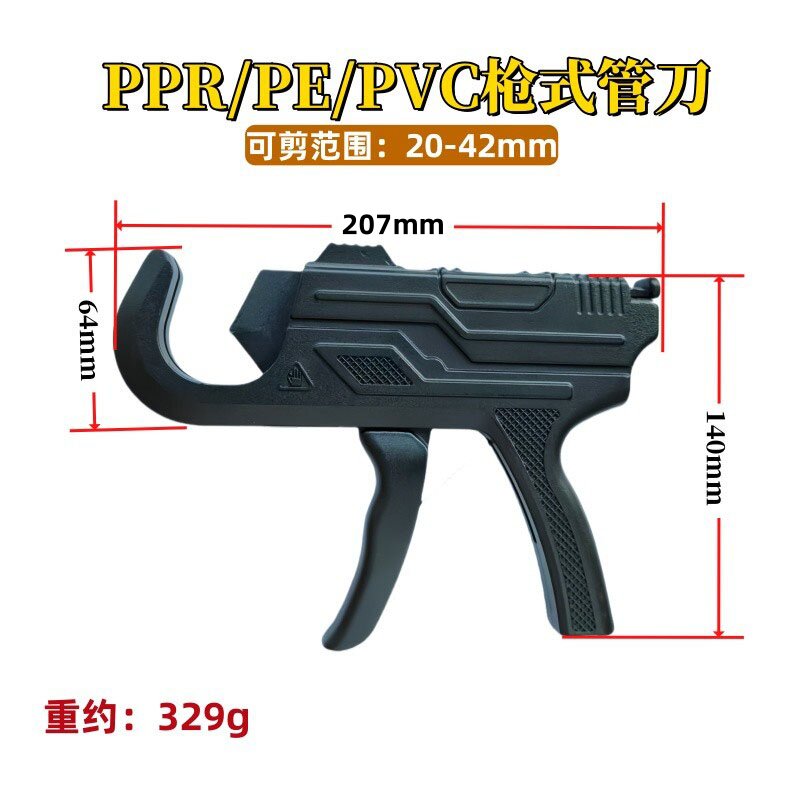 新款42枪式管子剪刀是一款专为PPR、PE、PVC等塑料管材设计的高效切割工具。采用人体工学枪式手柄,握感舒适,操作省力,单手即可轻松完成切割。配备高硬度合金钢刀片,锋利耐用,切口平整无毛刺,有效延长使用寿命。独特的快剪结构实现快速开合,提升工作效率,适用于家装、水暖安装及维修等场景。刀口精准对位,确保切割垂直,避免管材变形。整体结构紧凑,携带方便,是专业水电工和家庭用户的理想之选。无论是20mm以内的PPR管还是PE、PVC管,均能轻松应对,安全高效,值得信赖。