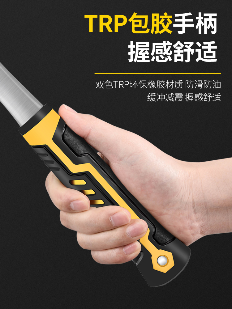 八角锤3磅手锤是一款专为石工、砸墙等重体力作业设计的一体成型工具。采用优质高碳钢锻造,锤头与手柄连体结构,坚固耐用,抗冲击性强,有效防止锤头脱落。3磅重量适中,兼顾力量与操控性,八角形锤头设计便于精准敲击和劈裂作业,广泛应用于墙体拆除、石材加工、建筑装修等领域。手柄经防滑处理,握感舒适,长时间使用不易疲劳。相比传统大锤,该锤省力高效,提升工作效率,是建筑工人、装修师傅的理想选择。一体式结构更安全可靠,经久耐用,性价比极高。