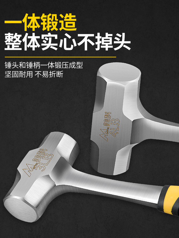 天猫八角锤3磅手锤一体石工锤砸墙工具大锤钢锤锤子连体锤头榔头2省力
