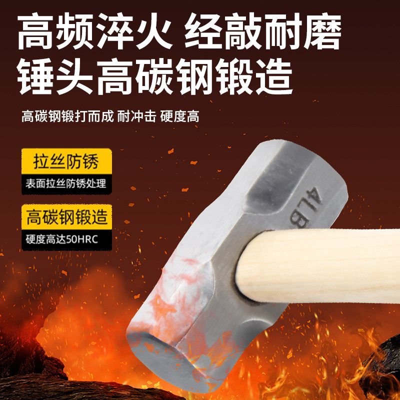 八角锤榔头木柄铁锤子磅6磅8磅10铁锤磅工地砸墙专用电工木工锤子