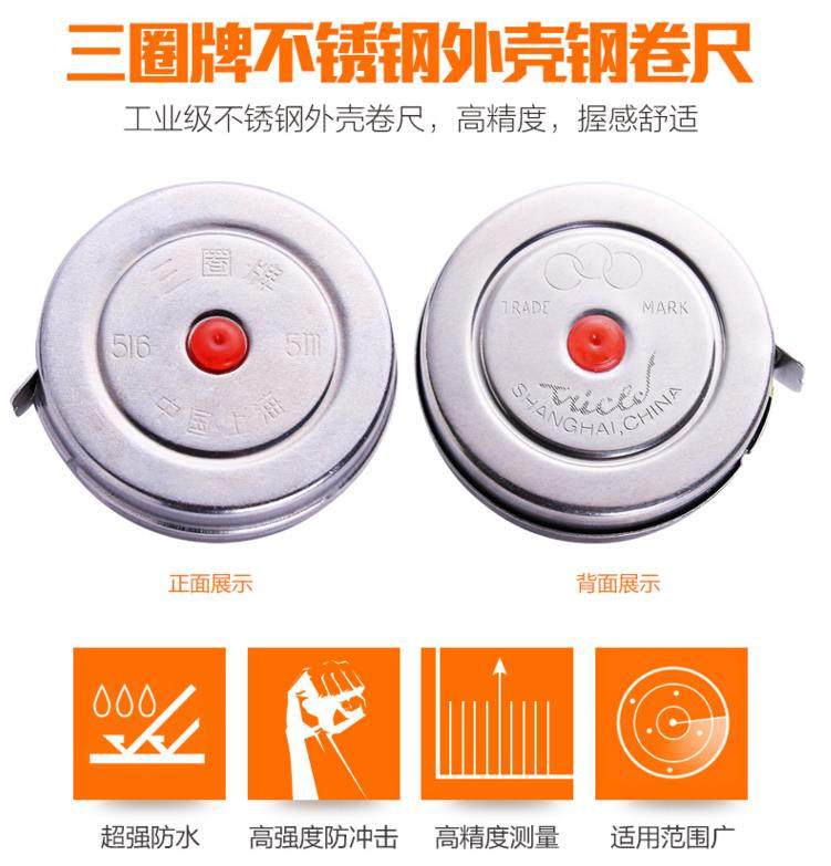 淘宝三圈不锈钢外壳钢卷尺迷你小卷尺子1米2米3米5米公制高精度测量