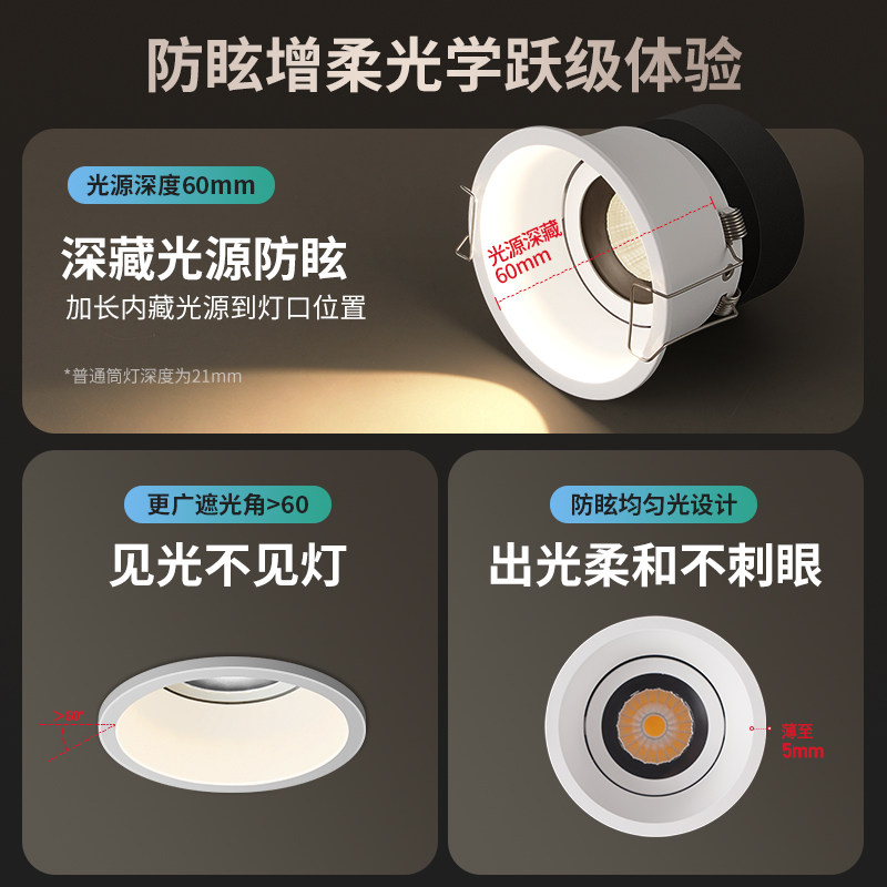 天led射灯3500k窄边嵌入式深杯防眩光客厅家用小山丘洗墙灯cob筒灯