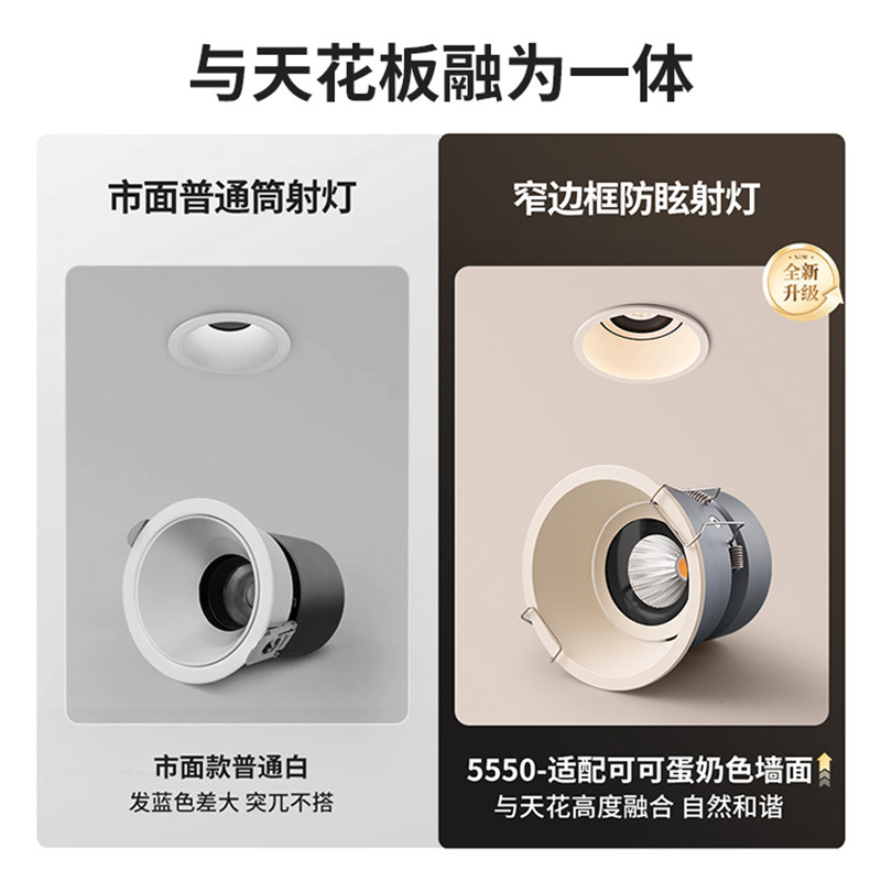 淘佛山照明led筒灯白玉银边桶灯防眩防雾2.5寸开孔超薄天花灯嵌入式