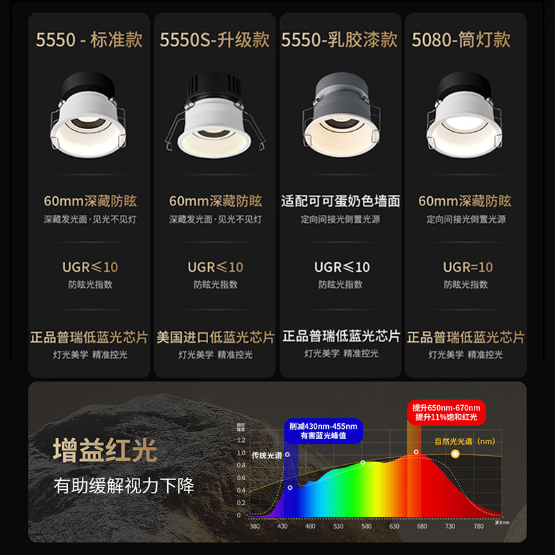 天猫至御射灯小山丘嵌入式洗墙天花灯客厅无主灯智能护眼筒灯射灯5550