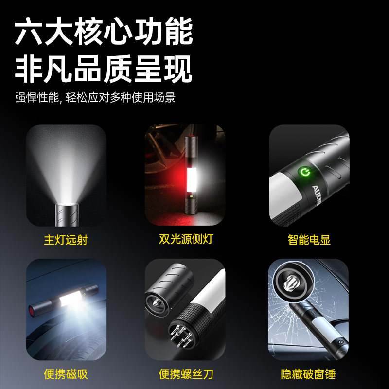 天猫奥克斯多功能强光手电筒远射超亮大功率应急救援破窗器磁吸工作灯