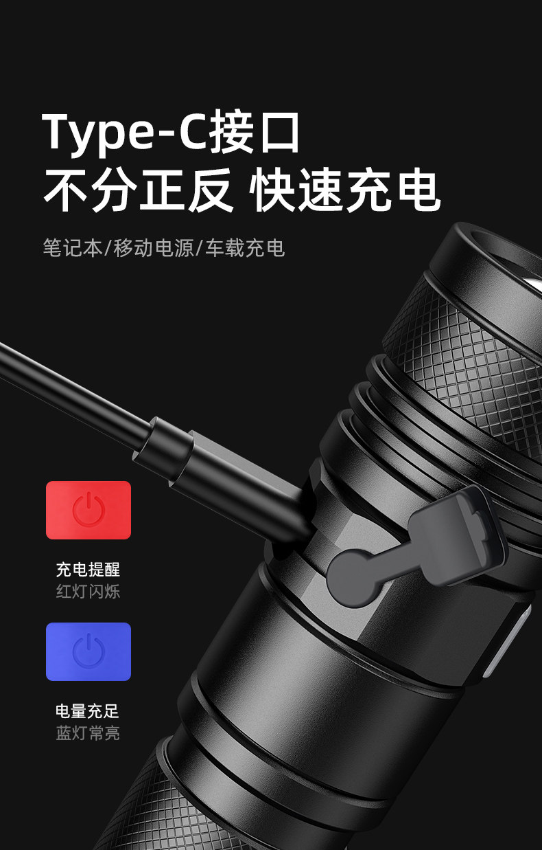 多功能高亮强光手电筒充电便携小型露营户外灯学生宿舍护眼看书