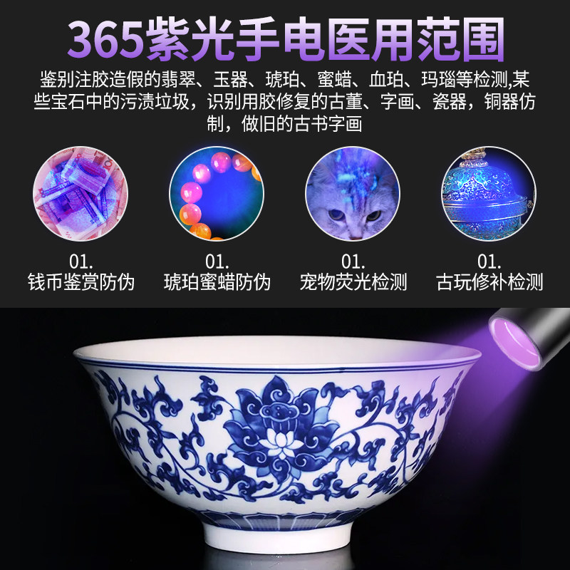 天猫荣事达紫光灯鉴定专用紫外线手电筒365nm玉石翡翠验钞笔荧光uv灯