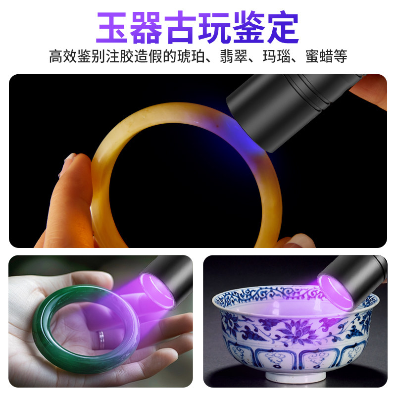 荣事达紫光灯鉴定专用紫外线手电筒,采用365nm精准波长UV LED,专为玉石、翡翠、宝石等贵重物品的真伪鉴定而设计。其高纯度紫外线可有效激发矿物内部荧光反应,帮助识别天然与人工处理材质,广泛应用于收藏、珠宝检测及古玩鉴定。同时具备验钞功能,可快速识别纸币防伪标记。手电筒体积小巧,便于携带,配备优质铝合金外壳,坚固耐用,续航持久。操作简单,一键开关,适合专业人士及爱好者使用。无论是日常收藏鉴别还是专业检测,荣事达365nm紫外线手电筒都是可靠高效的工具,为您的贵重物品保驾护航。