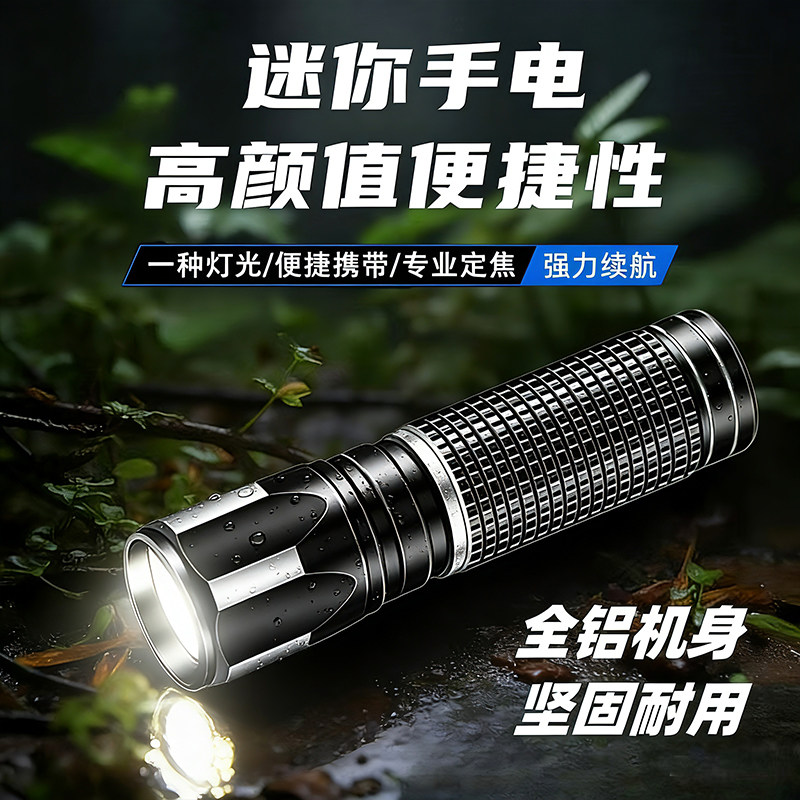强光手电筒 AA兼容14500锂电池家用学生老人EDC小巧户外便携迷你