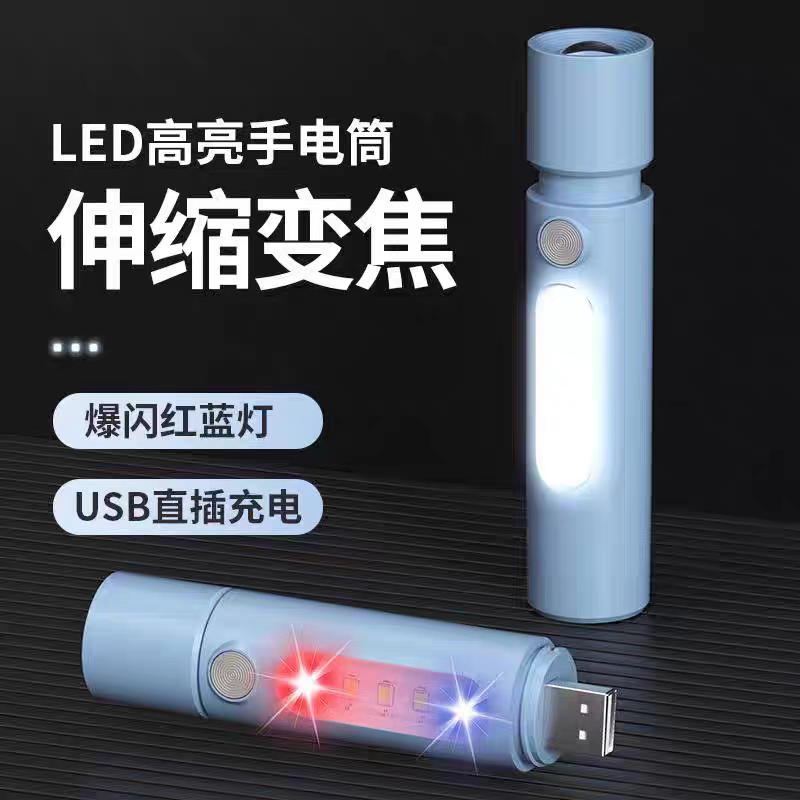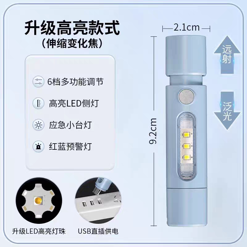 多功能高亮强光手电筒充电便携小型露营户外灯学生宿舍护眼看书