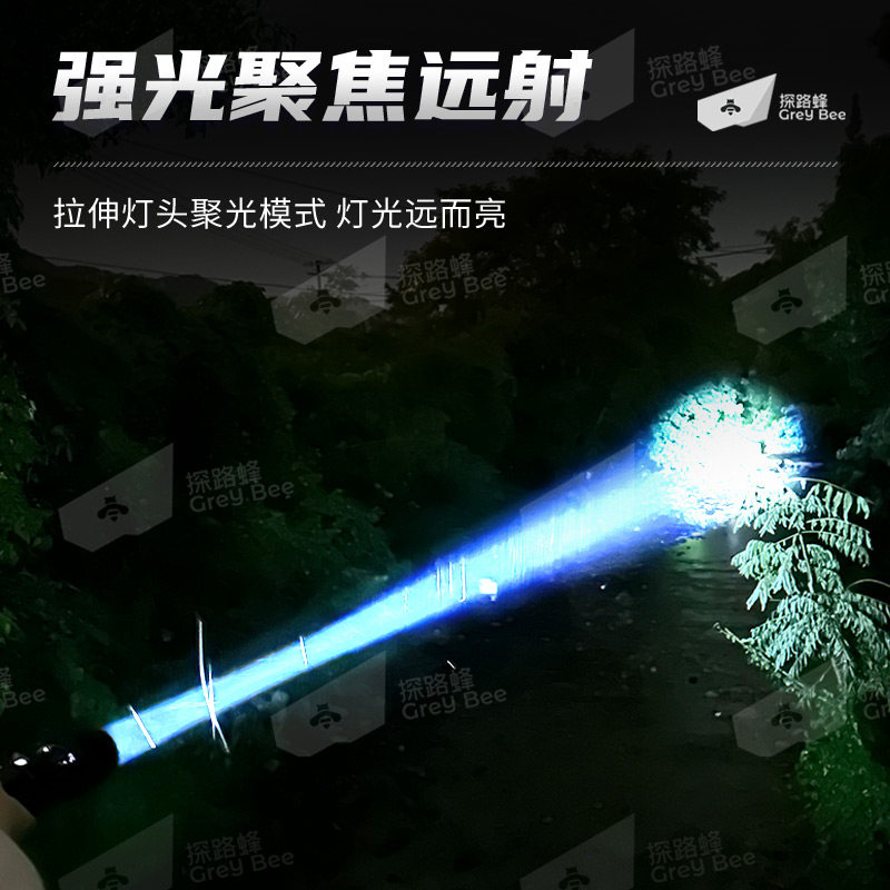 手电筒强光充电长续航家用户外耐摔变焦聚光便携超亮氙气照明灯