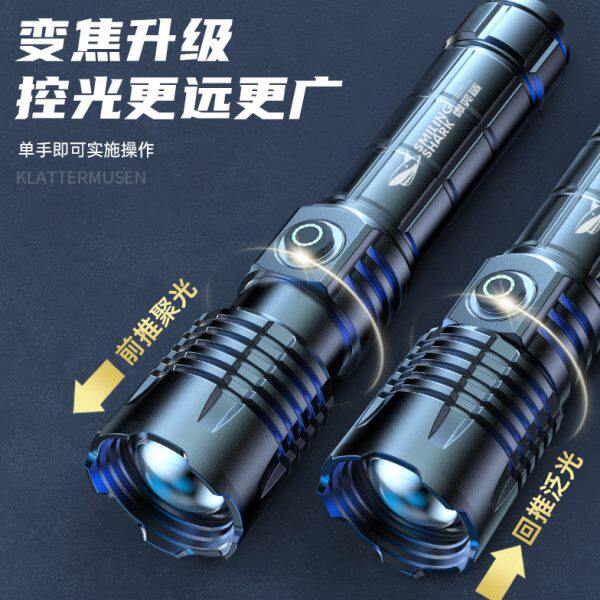 天微笑鲨双灯源侧灯强光手电筒伸缩变焦超亮户外远射家用长续航露营