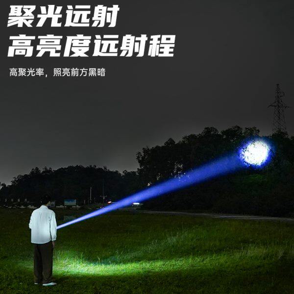 久量强光手电筒LED充电式户外耐用手提灯超亮远射家用应急探照灯