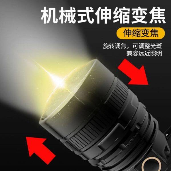 天微笑鲨强光照明手电筒便携白激光伸缩变焦户外应急手电家用充电式