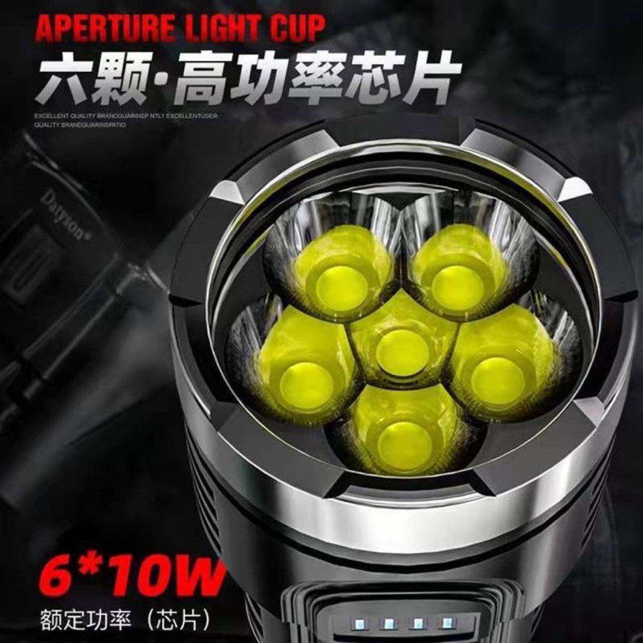 天沃尔森d6000手电筒强光充电式户外超亮手提灯多功能家用探照灯