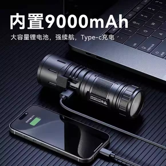 天手电筒2026新款强光充电户外家用照明小型便携超亮远射灯超长续航