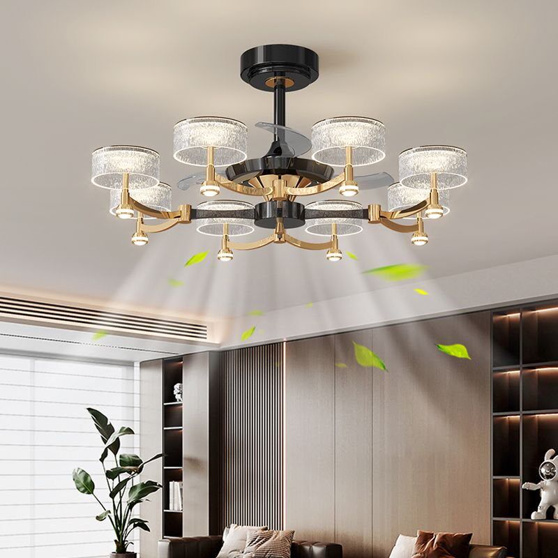 淘隐形风扇灯客厅卧室吊扇灯餐厅简约现代家用带LED电风扇吊灯变频