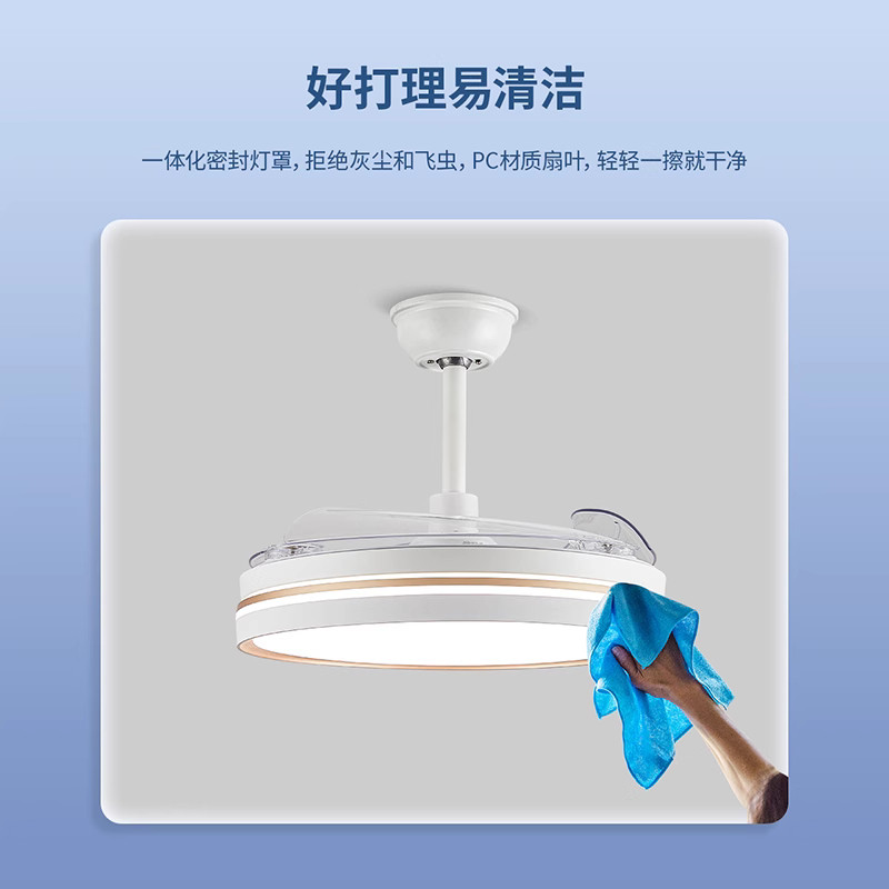 隐形风扇灯客厅卧室吊扇灯餐厅简约现代家用带LED电风扇吊灯变频
