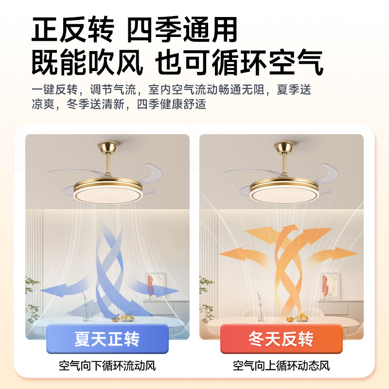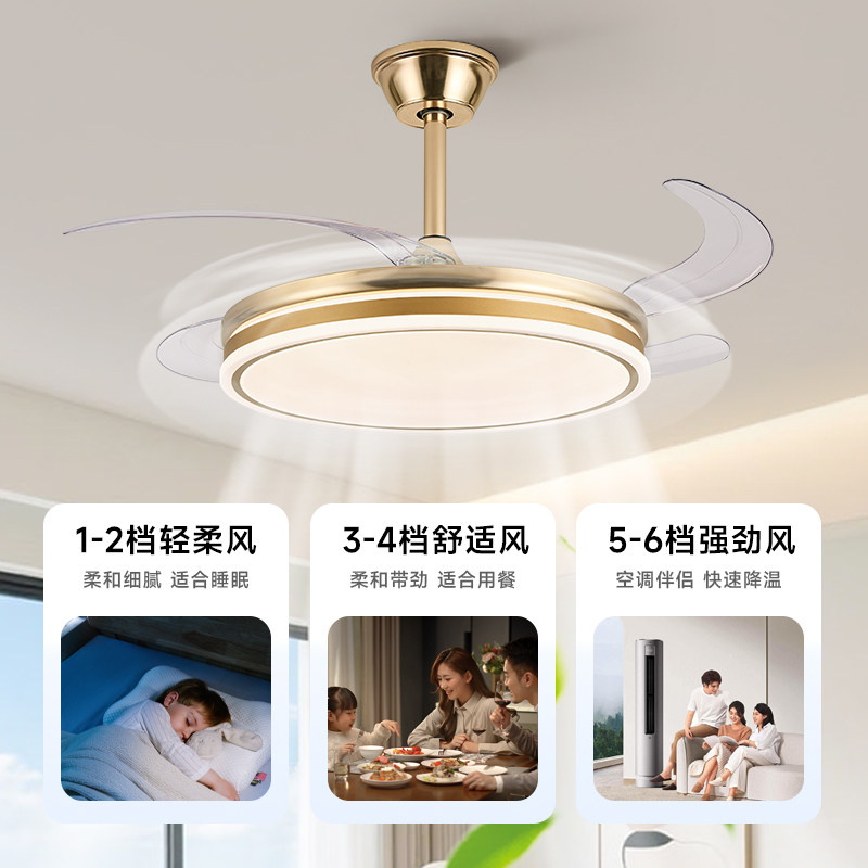 淘宝隐形风扇客厅卧室吊扇简约风扇灯护眼光家用一体电扇吊灯卧室