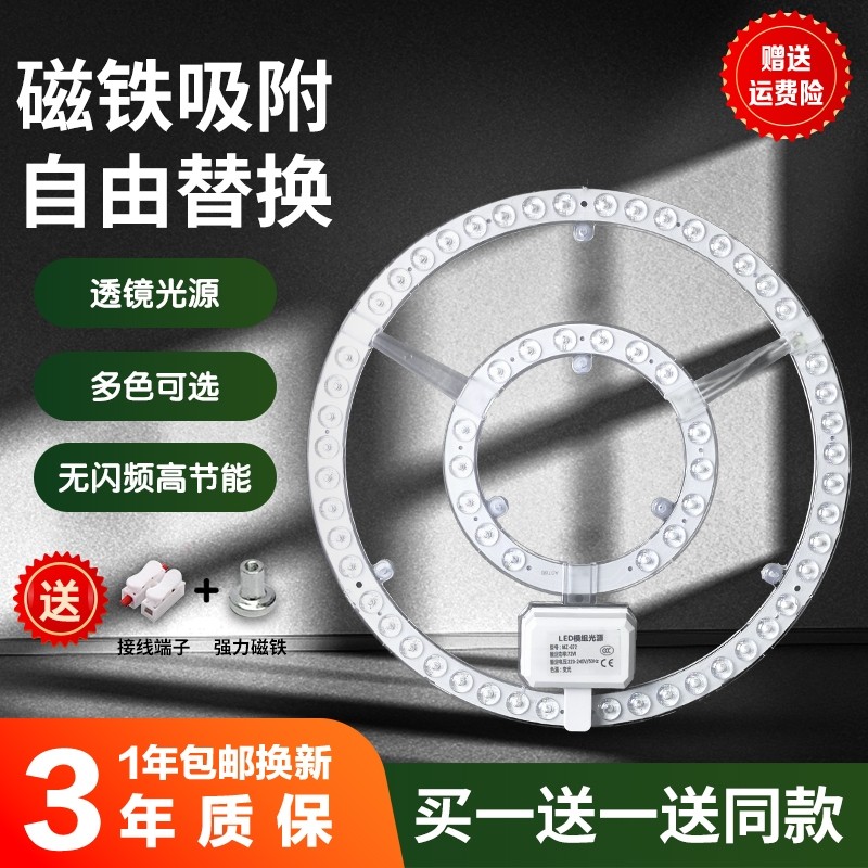 淘LED灯芯圆形灯片节能照明卧室家用吸顶灯板替换灯盘磁吸改装贴片