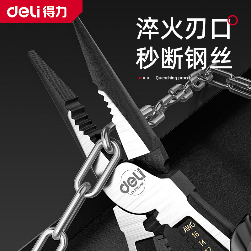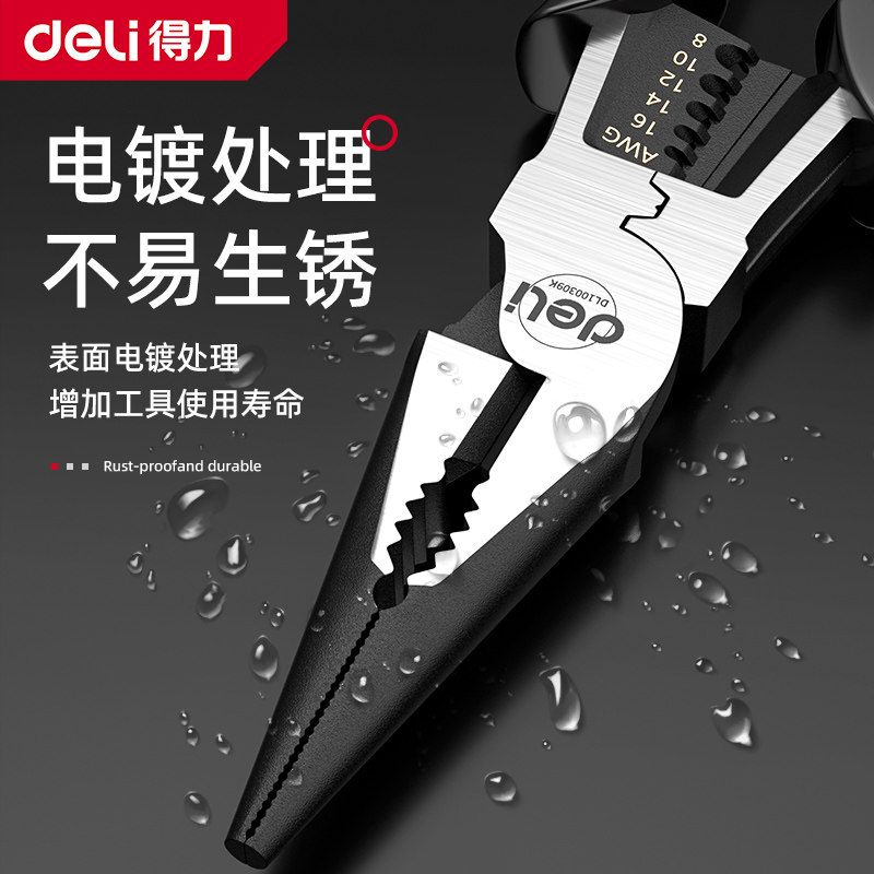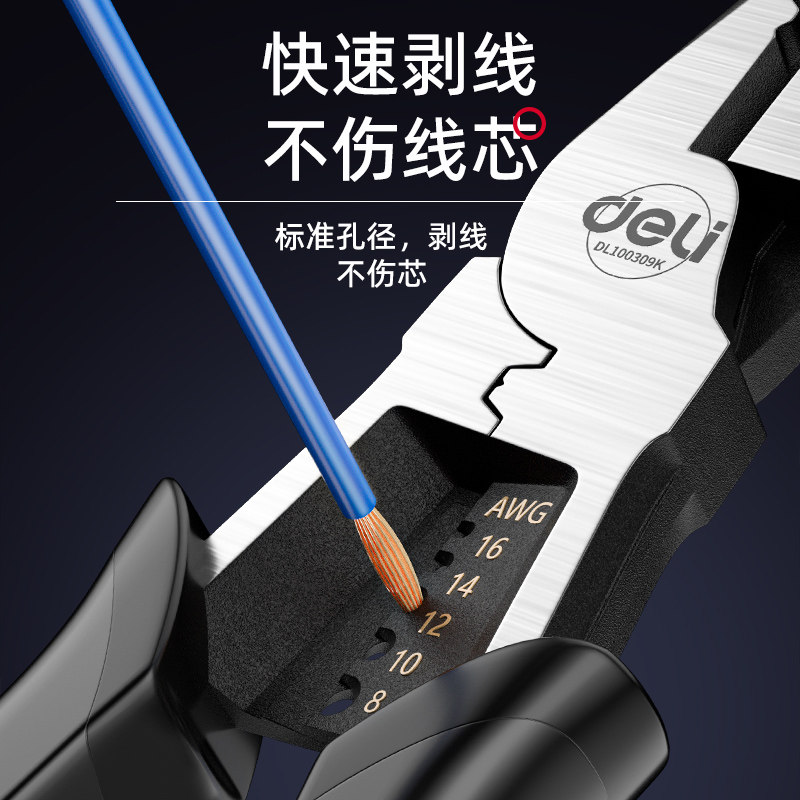 得力老虎钳钢丝钳多功能家用老虎工具大全电工专用斜口尖嘴手钳子