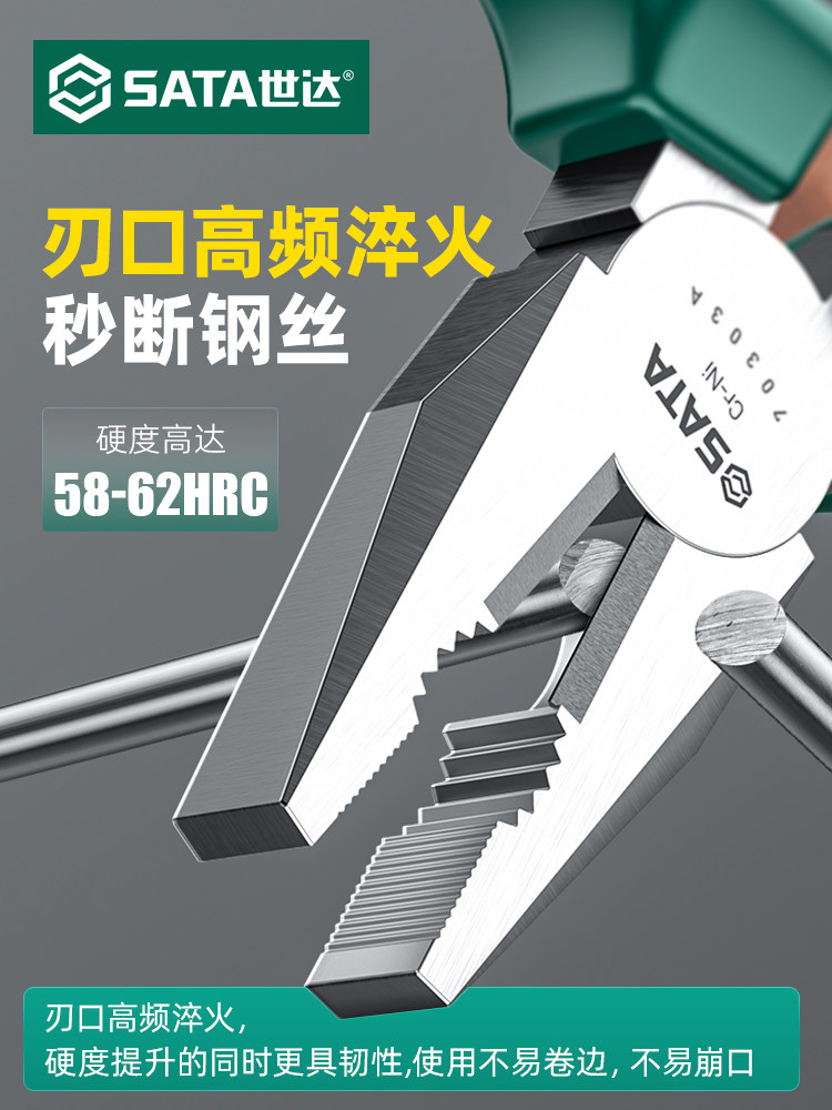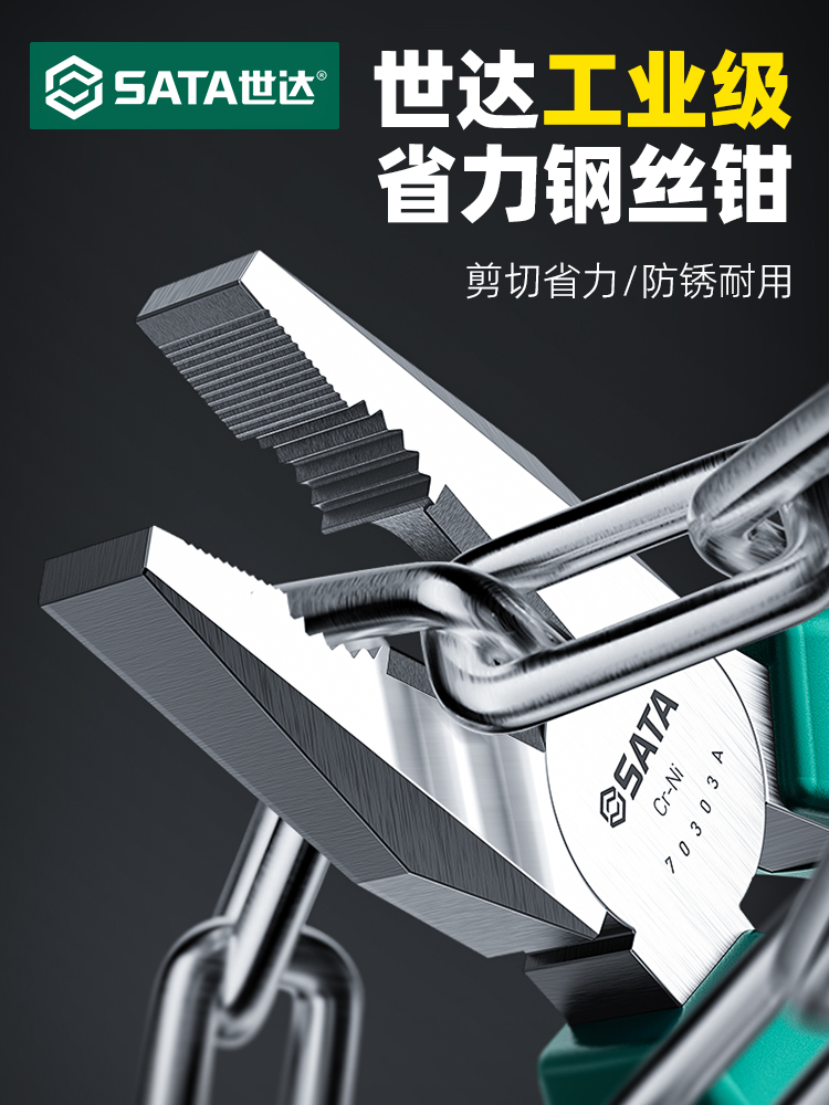 世达工具工业级老虎钳钢丝钳电工专用斜口尖嘴多功能万用斜嘴钳,专为专业电工及维修人员设计,集斜口、尖嘴、钢丝剪切等多功能于一体。采用优质高碳钢锻造,经热处理工艺,硬度高、耐磨性强,确保长久耐用。钳口精密加工,咬合紧密,剪切力强,可轻松剪断钢丝、电线及细小金属件。人体工学防滑手柄,握感舒适,长时间使用不易疲劳。适用于电气安装、设备维修、电子制作等多种场景,是工具箱中的得力助手。世达品牌保障,品质可靠,广泛应用于工业、家庭及专业领域,值得信赖。