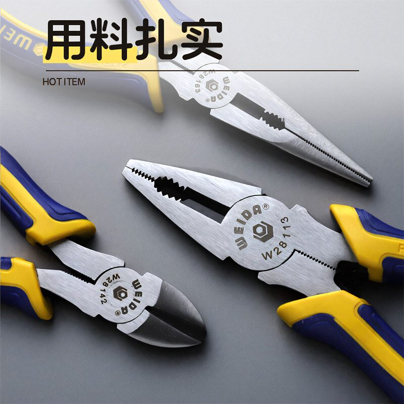 天猫威达尖嘴钳电工专用省力钢丝钳工业级老虎钳多功能钳子家用斜嘴钳