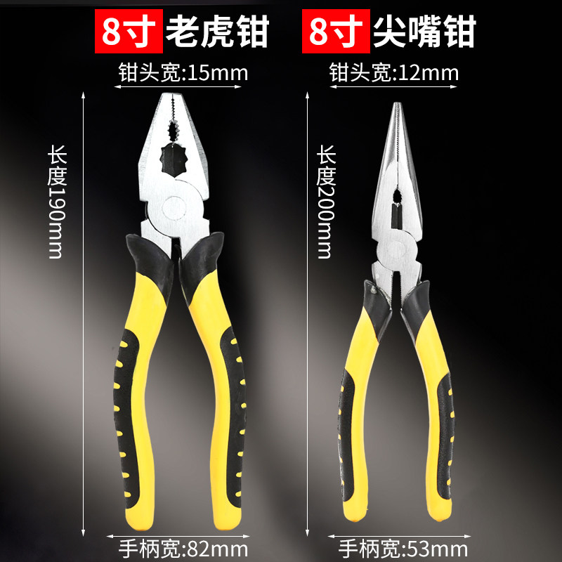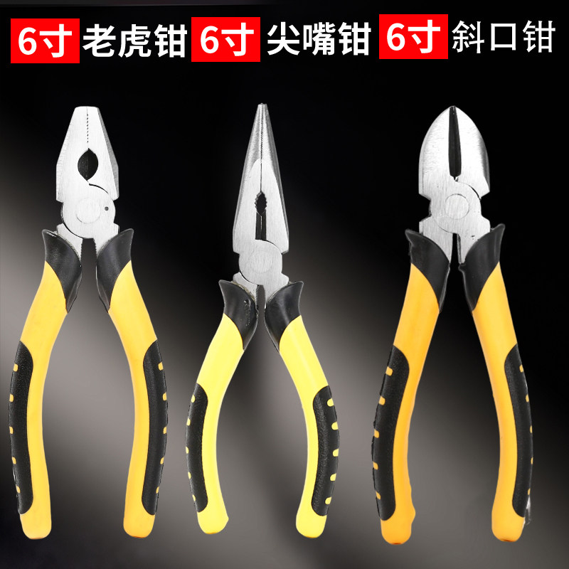 牛百老虎钳尖嘴钳钢丝钳电工专用斜口多功能万用五金工具大全钳子