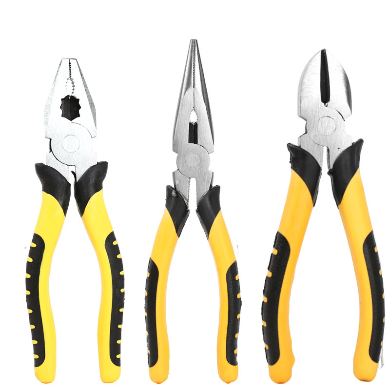 老虎钳、钢丝钳、斜口钳、尖嘴钳等多功能家用及工业级钳子,是专业维修与日常作业的理想工具。采用高碳钢锻造,硬度高、耐磨损,手柄防滑设计,握感舒适,操作省力。老虎钳夹持力强,适用于夹紧、扭转;钢丝钳可轻松剪断铁丝、铜线;斜口钳精准剪切电线及细小零件;尖嘴钳则擅长在狭小空间精细操作。工业级品质确保耐用性与稳定性,广泛应用于电工、机械、家居维修等领域。一套齐全的多功能钳子工具,满足从基础DIY到专业作业的多样化需求,是工具箱中不可或缺的实用装备。