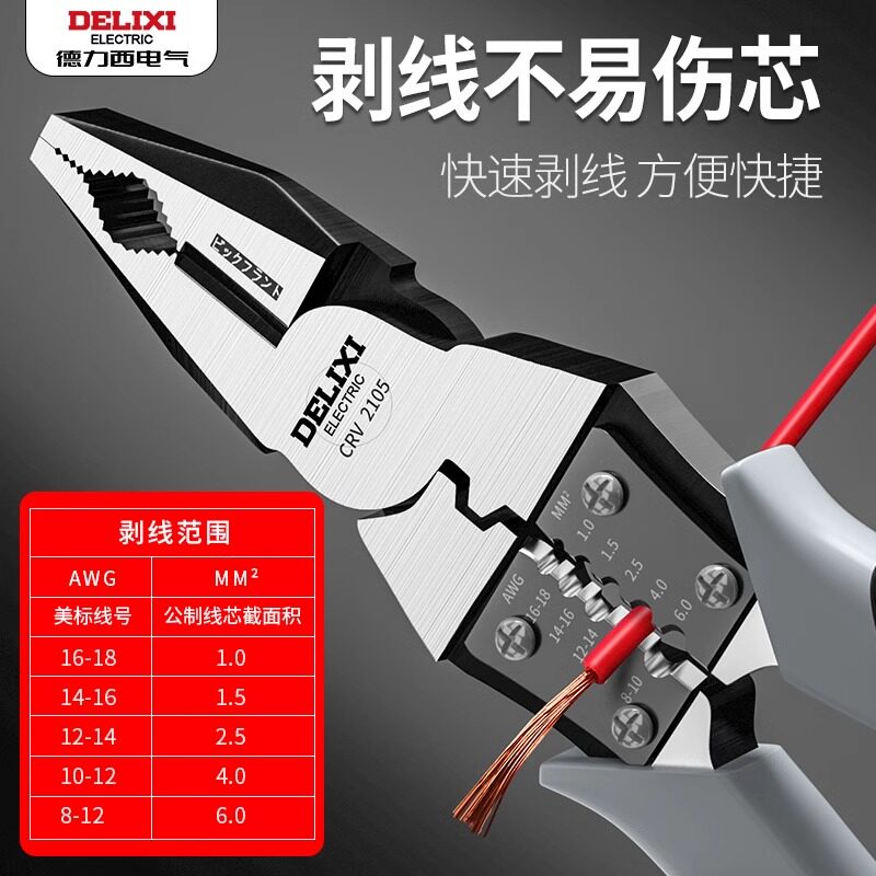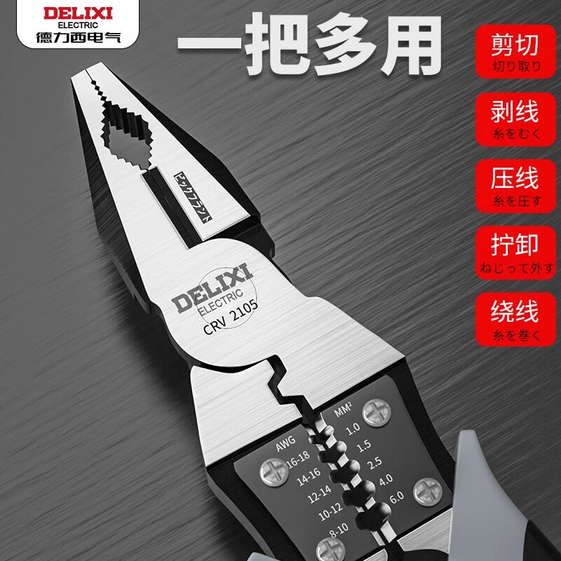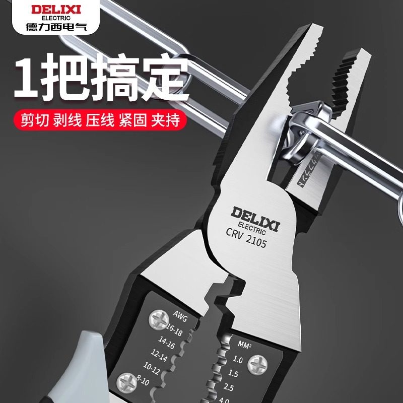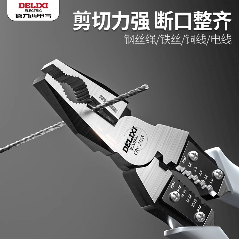 德力西老虎钳多功能万用斜口钳是一款集多种功能于一体的优质五金工具,适用于电工、维修、DIY等多种场景。采用高碳合金钢锻造,硬度高、耐磨性强,手柄防滑设计,握感舒适,操作省力。集斜口钳、钢丝钳、尖嘴钳等功能于一身,可轻松剪切电线、夹持细小零件、弯折金属丝等,用途广泛。精密加工确保钳口咬合紧密,剪切利落不毛边。德力西品牌保障品质可靠,是家庭工具箱和专业维修人员的理想选择。无论是日常家用还是工业作业,这款多功能钳子都能高效应对,提升工作效率,是实用与耐用的完美结合。