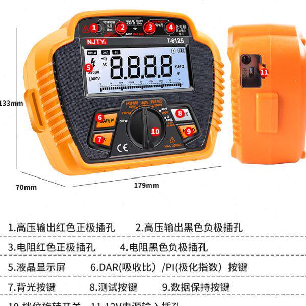 淘宝T6125高精度绝缘电阻测试仪摇表数字兆欧表电工200GΩ2500V绝缘表