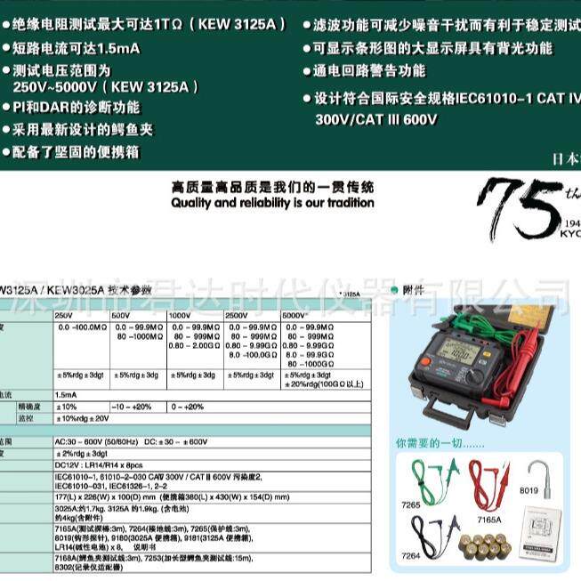 淘宝3125A高压绝缘电阻测试仪KEW3125A高压兆欧表