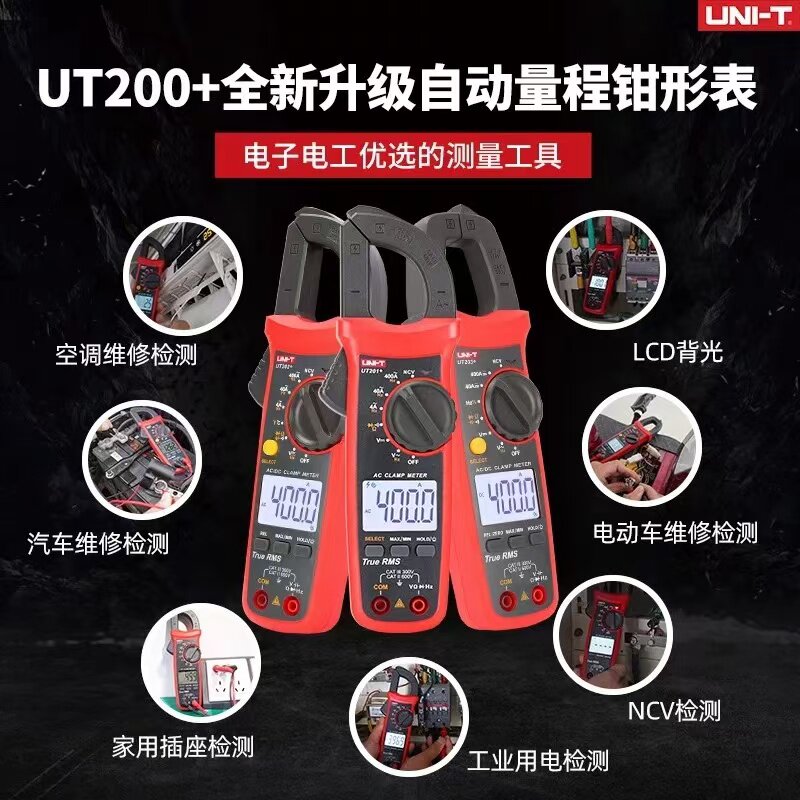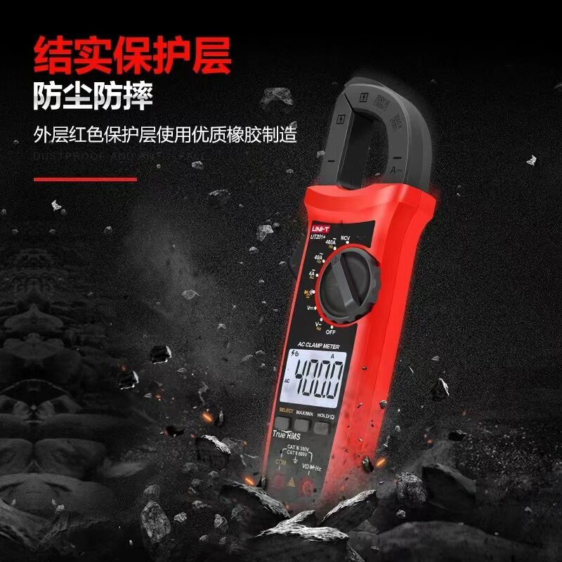 优利德UT202A/201/203/204+/210E系列数字钳形表是一款高精度、多功能的交直流电流测量仪表,适用于电力、通信、工业设备维护等领域。该系列采用非接触式钳形设计,可安全便捷地测量交流/直流电流,无需断开电路。具备真有效值(True RMS)测量功能,确保在复杂波形下仍保持高精度。支持电压、电阻、通断测试等多种功能,部分型号还具备数据保持、背光显示和自动关机功能。结构紧凑、操作简便,防护等级高,适合在恶劣环境中使用。无论是电工日常检修还是专业技术人员现场作业,该系列钳形表均以可靠性能与精准测量赢得广泛信赖。