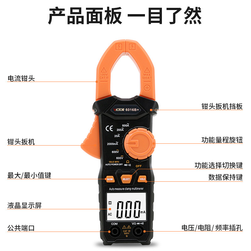 胜利钳形表万用表交直流钳表6016A+数字高精度 钳型表电工多用表