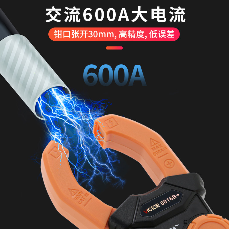 胜利仪器VC6016系列钳形万用表是一款高精度数字钳形电流表,专为电工、维修及工业检测设计。该表采用非接触式钳形测量技术,可安全便捷地测量交流/直流电流,最大量程达1000A,同时支持电压、电阻、电容、频率及通断测试等功能。配备真有效值(True RMS)测量,确保在复杂波形下仍保持高准确度。大屏背光LCD显示,数据清晰易读,具备数据保持、自动关机及过载保护等实用功能。结构紧凑、操作简便,适用于电力系统、电机控制、新能源等领域,是专业用户和 technicians 的理想测量工具。