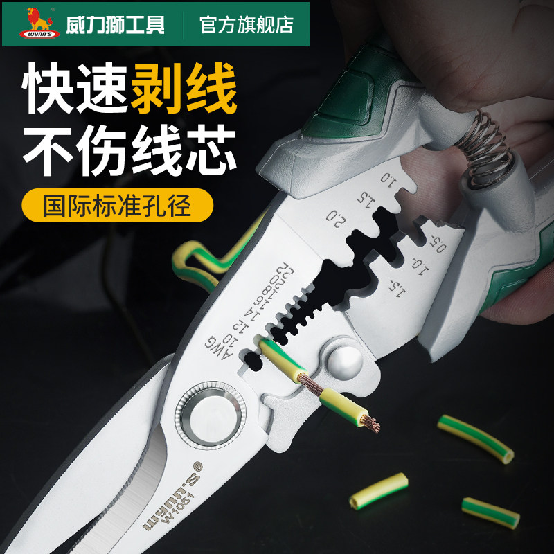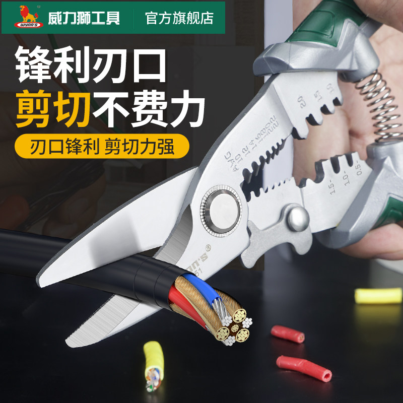 天猫威力狮多功能电缆剪 电线剪刀剥线压线剪电缆钳不锈钢工业级7 8寸