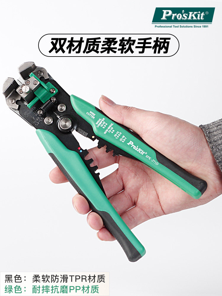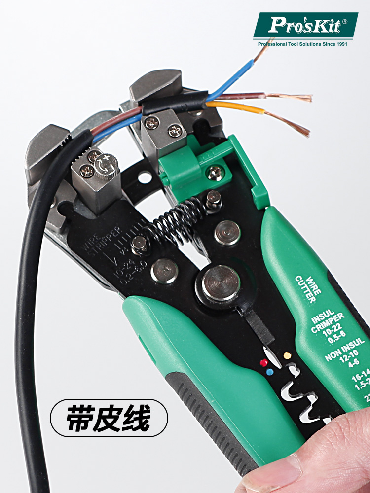 台湾宝工多功能电工剥线钳是一款专业级全自动剥线工具,适用于多种规格的电线(0.5–6mm²),操作简便高效。采用精密刀口设计,可精准剥除绝缘层而不损伤导体,确保接线安全可靠。配备自动调节压力功能,适配不同线径,一夹一拉即可完成剥皮,大幅提升工作效率。人体工学手柄设计,握感舒适,防滑耐用,适合长时间作业。广泛应用于电力、通信、家电维修及电子制造等领域。宝工品牌以高品质、高耐用性著称,此剥线钳兼具精准、省力与耐用特性,是专业电工和电子爱好者的理想选择,值得信赖。