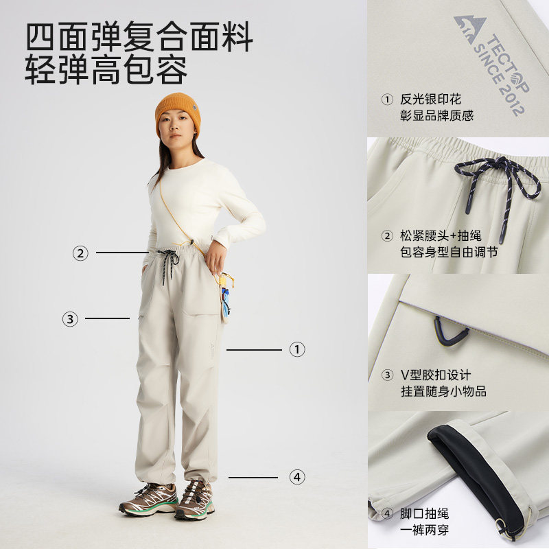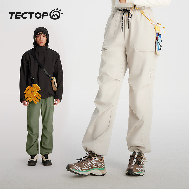 天猫TECTOP探拓户外软壳裤男女伞兵裤春夏工装裤宽松收口直筒休闲长裤