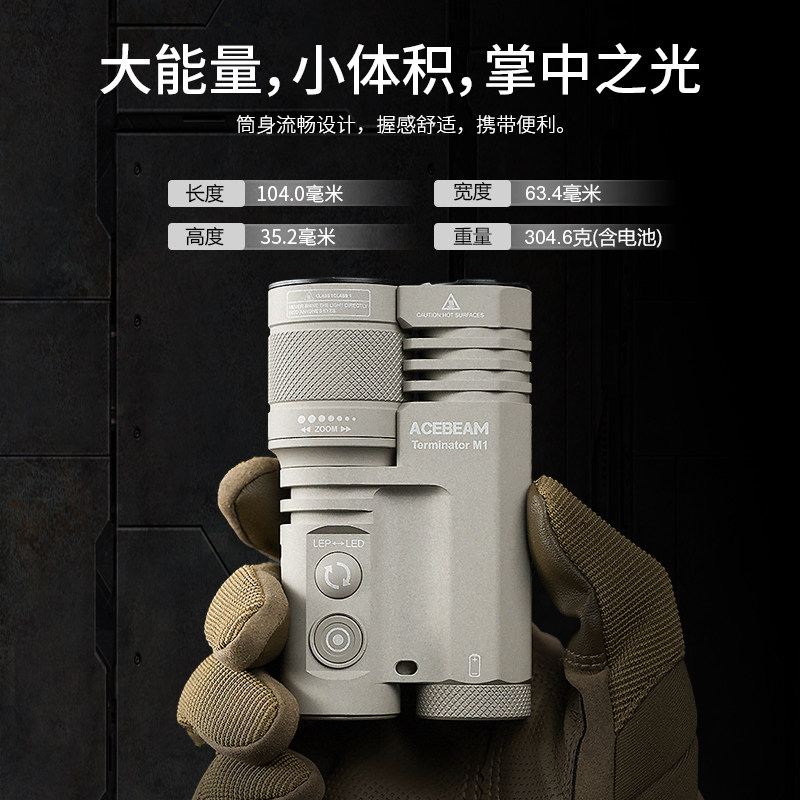 天猫ACEBEAM M1聚泛双光源变焦手电筒强光充电LEP户外防水超亮远射灯