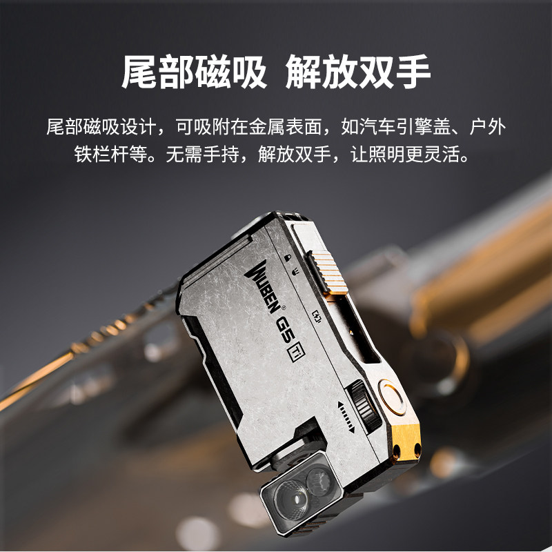 天猫务本G5便携灯磁吸EDC强光手电筒RGB红蓝闪登山头戴灯户外充电防水