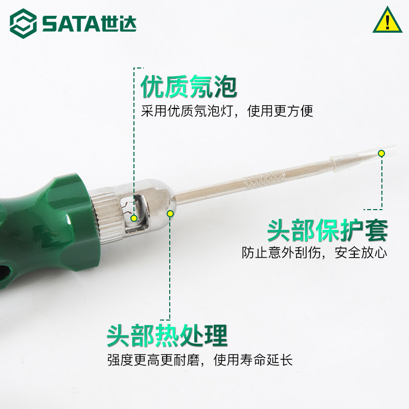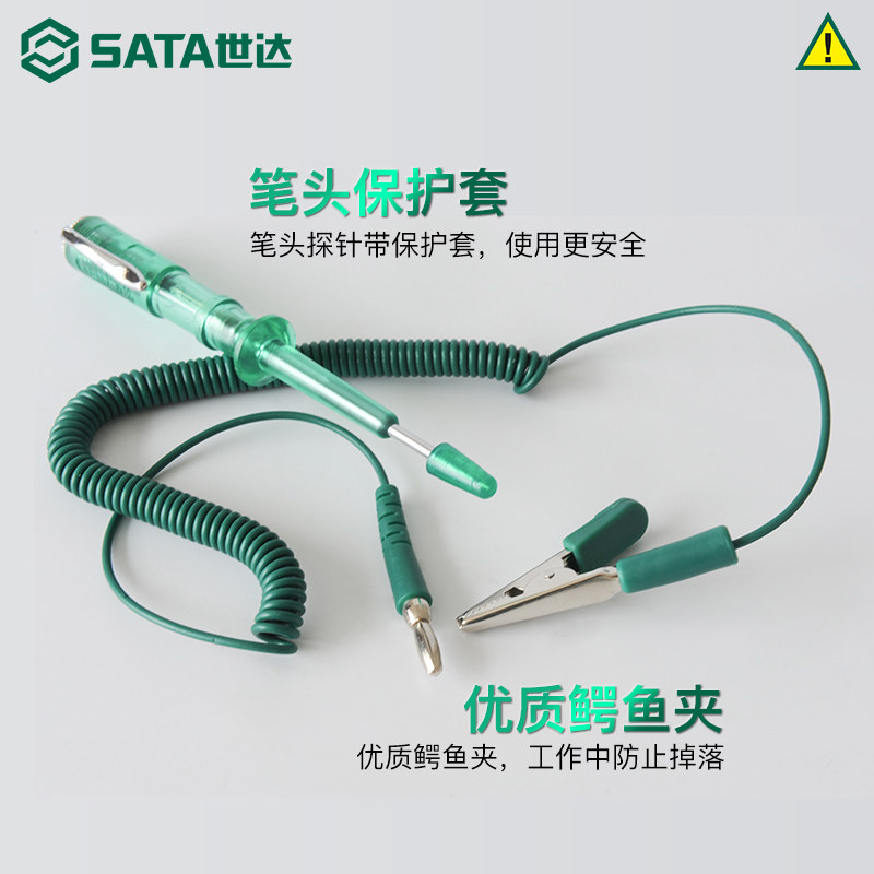 世达汽车测量测电笔是一款专为汽车维修设计的便携式电路检测工具,支持6V、12V和24V多种电压系统,广泛适用于轿车、货车及工程机械等车辆。该测电笔采用高亮度LED指示灯,能清晰显示电路通断与电压状态,操作简便,安全可靠。笔身配备绝缘护套和防反接设计,有效保护使用者安全。内置精密电阻与限流电路,避免对车辆电子元件造成损害。适用于检测保险丝、继电器、开关、传感器及线路故障,是汽修技师和车主进行电路检修的理想工具。世达品牌保障品质,耐用可靠,提升维修效率与准确性。