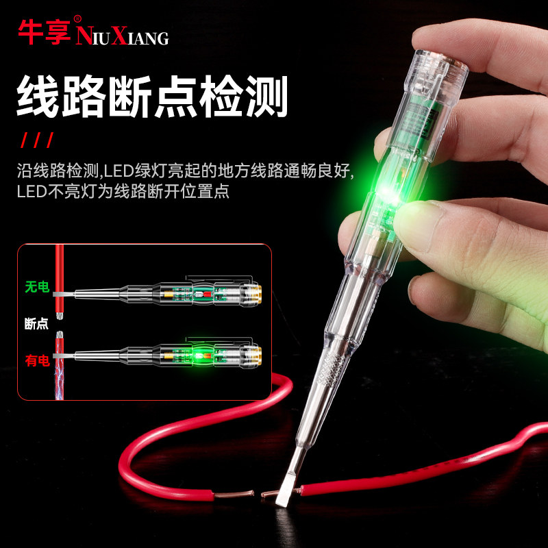 天保联智能测电笔感应高亮彩光电笔螺丝刀电工专用验电压测线查断点