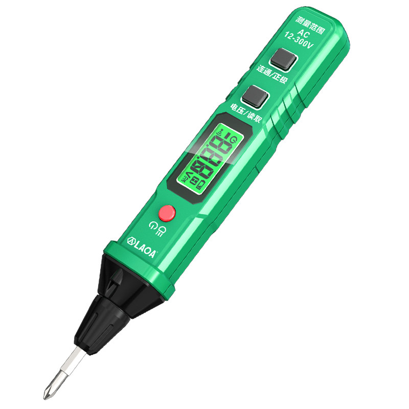 老A感应可换头测断线数显测电笔是一款专为电工设计的智能验电工具,集感应检测、数显电压、断线查找于一体。采用非接触式感应技术,可安全检测电线是否带电,避免直接接触风险。配备高清LCD数显屏,实时显示电压数值,精准识别火线、零线及断点位置。独特的可换头设计,适配多种检测场景,提升使用灵活性。具备低电压提示、自动关机等功能,操作简便且安全可靠。适用于家庭电路、工业设备及线路维修,是电工日常作业的理想助手,兼顾高效、精准与安全防护。