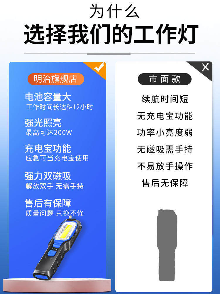 淘宝超亮汽修维修工作灯强光充电磁吸修车专用手电筒机修机床移动照明
