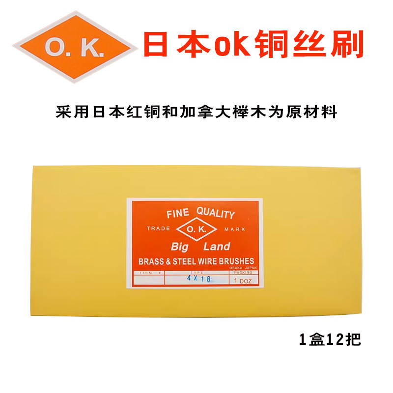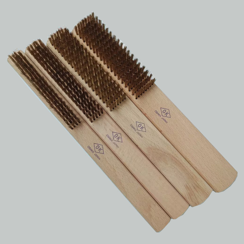 淘宝日本OK牌方形木柄铜丝刷金属清洁细刷抛光打磨加密纯铜钢丝刷