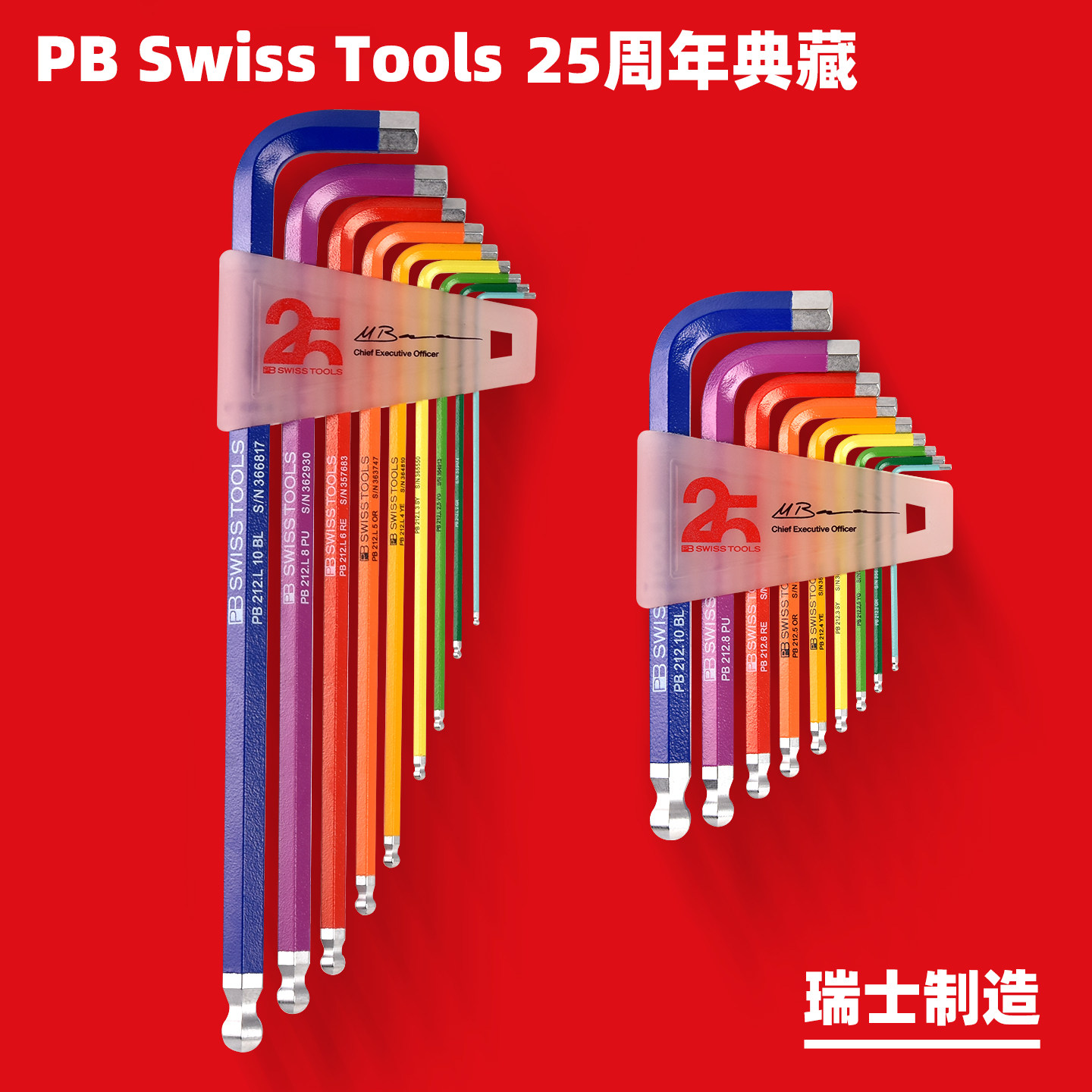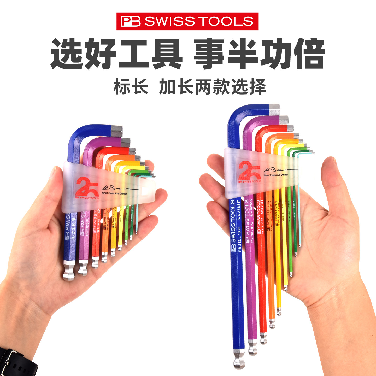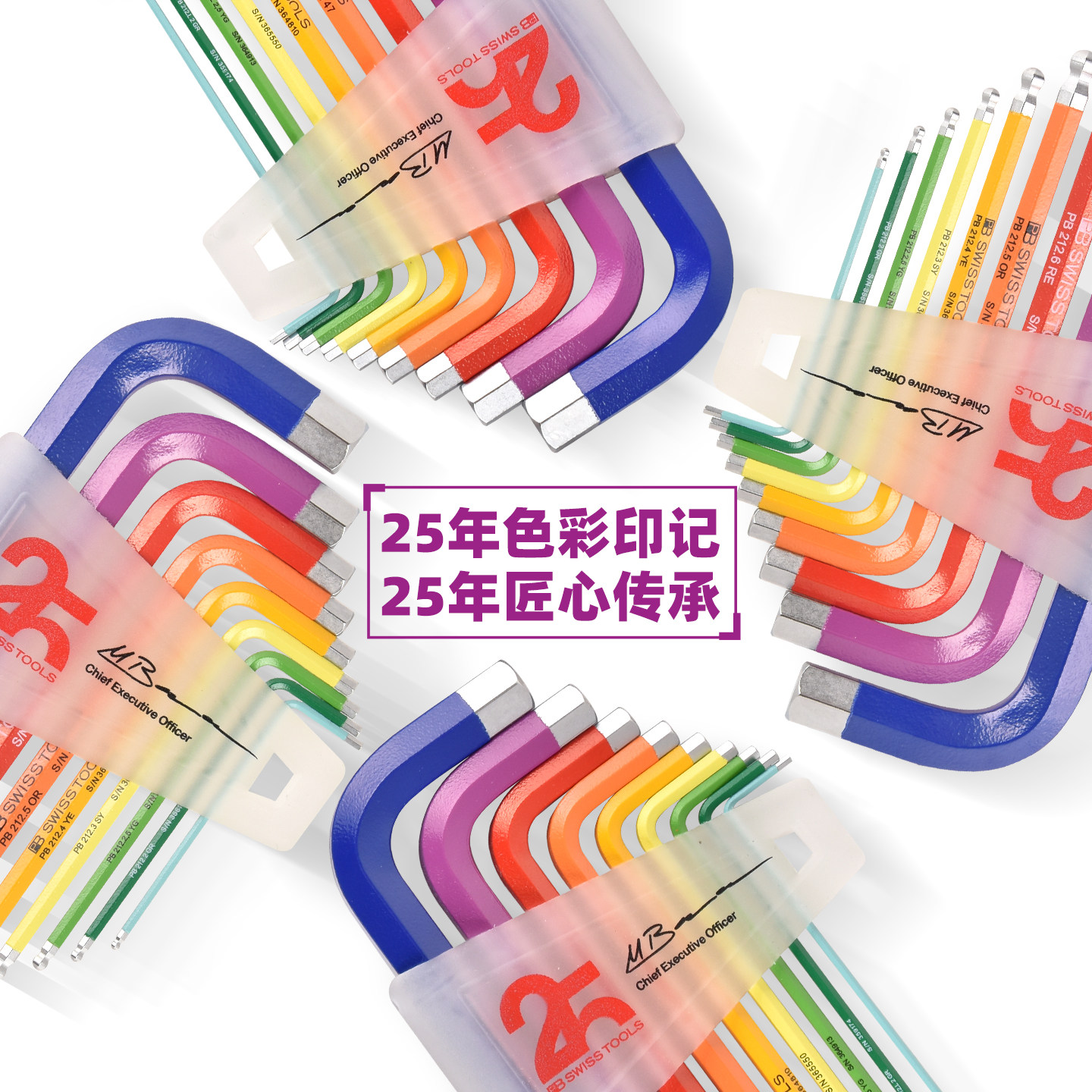 天猫25周年款瑞士PB内六角扳手套装彩色加长球头内六角扳手进口内六方