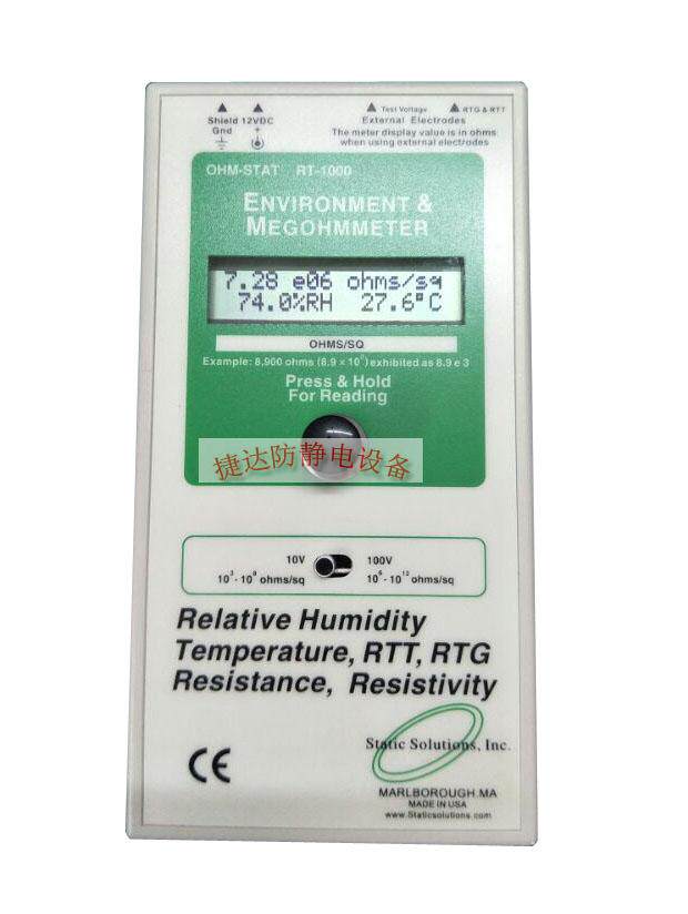 RT-1000数显表面电阻测试仪是一款高精度、便携式静电检测设备,专用于测量材料表面电阻、体积电阻及点对点电阻,广泛应用于电子制造、防静电工程、洁净室等领域。配备标准重锤电极,符合IEC 61340、EOS/ESD等国际标准,确保测量结果准确可靠。仪器采用数字显示屏,读数直观清晰,支持兆欧(MΩ)量程自动切换,具备数据保持和自动关机功能。适用于评估防静电地板、工作台面、包装材料等材料的静电耗散性能,是保障静电敏感区域安全的重要工具。RT-1000操作简便,响应迅速,是静电防护体系中的理想检测仪表。
